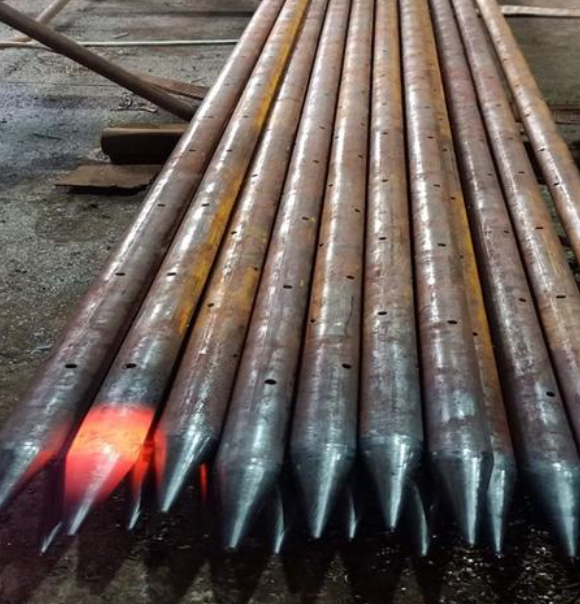 Q235B 钢材锻造,抗拉强度超 375MPa,抗腐蚀经千小时盐雾考验!梅花注浆孔精准布浆,注浆效率提升 30%,尖锥设计让安装快如闪电。支持 Φ42-50mm 全规格定制,附 ISO 认证与实测报告,从隧道到矿山,用强韧守护每寸工程安全,找我下单立享施工方案 + 24h 加急供货!